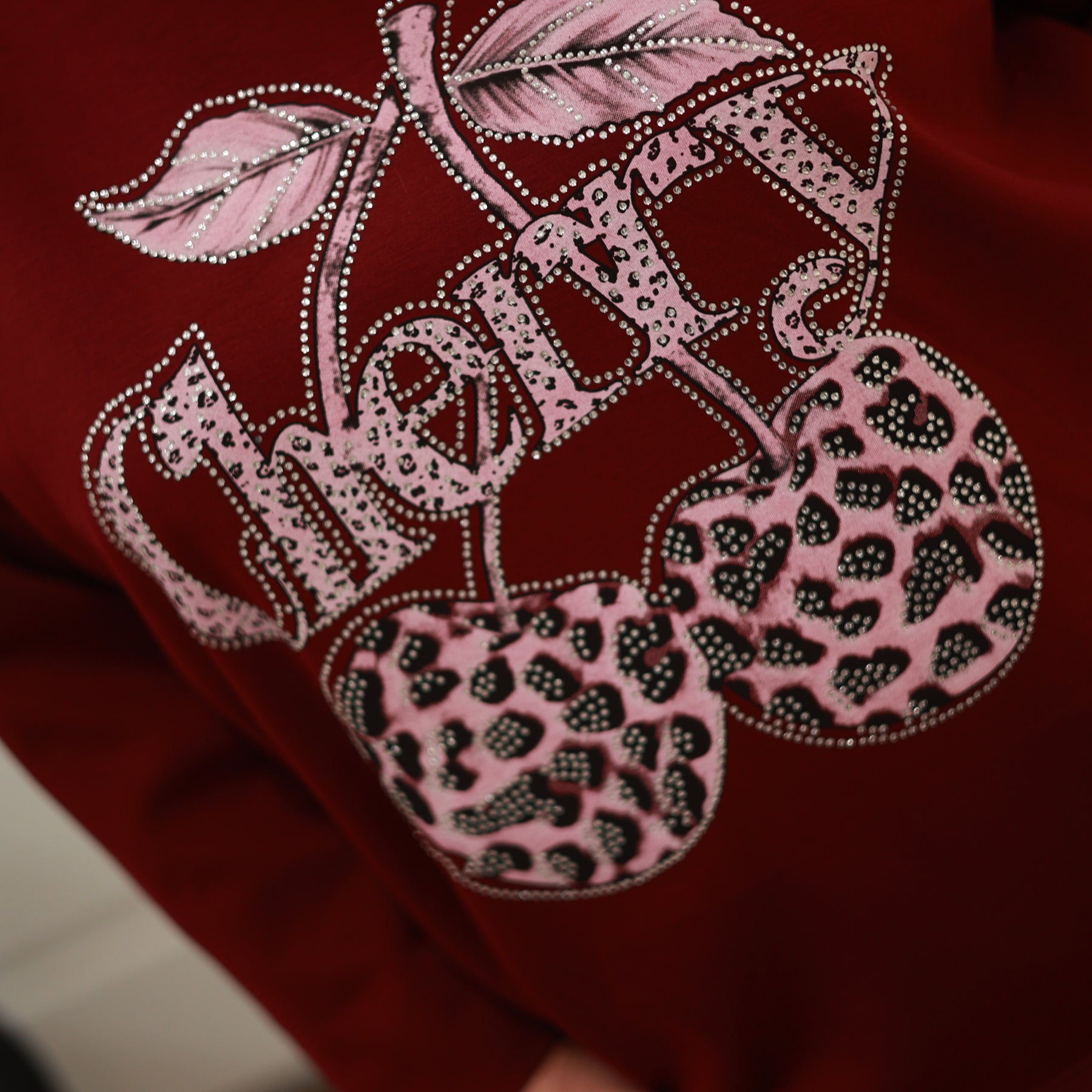 Hoody mit Kapuze mit Cherry Aufdruck und Strasssteine