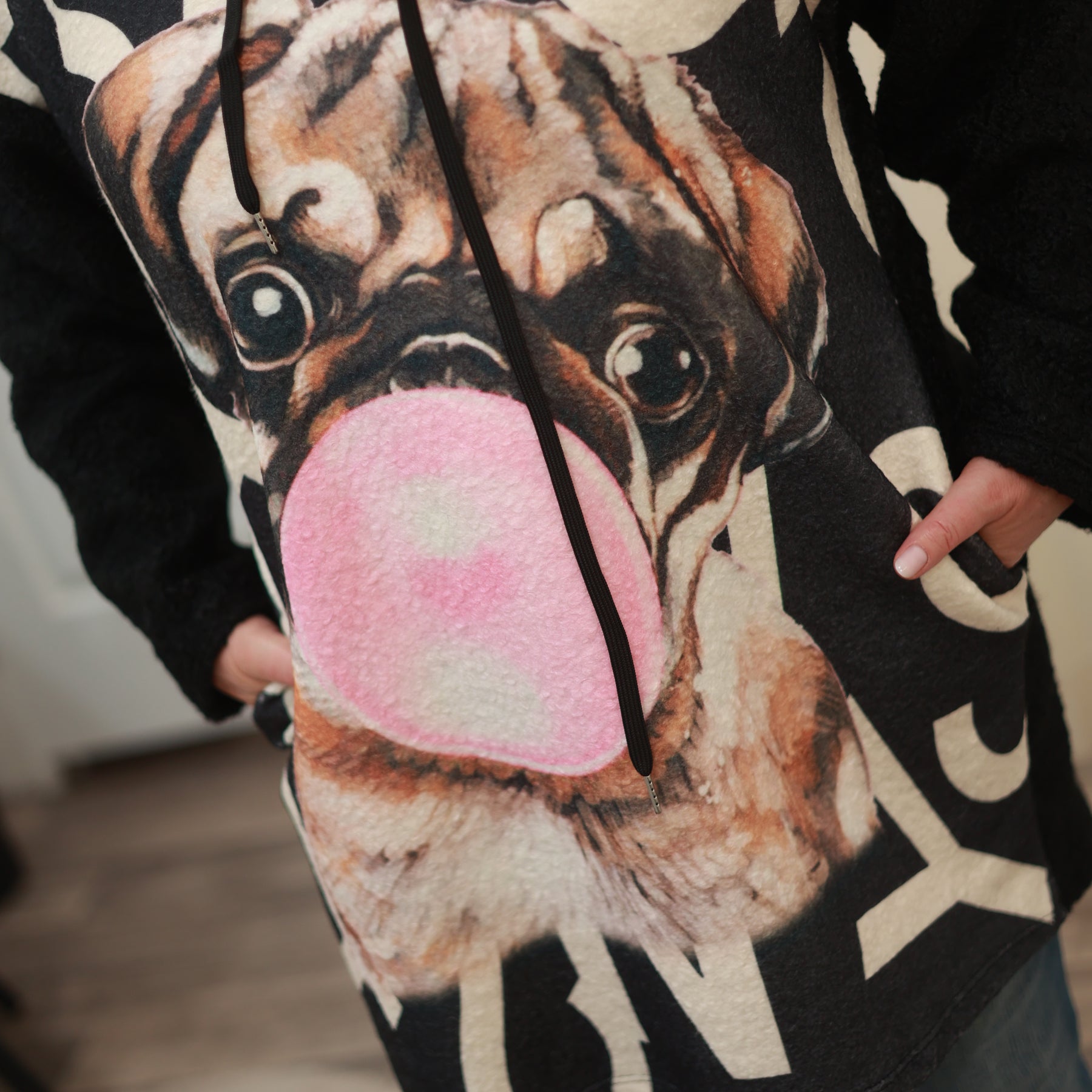Boucle-Sweat-Shirt  mit Kapuze, Druck und Seitentaschen